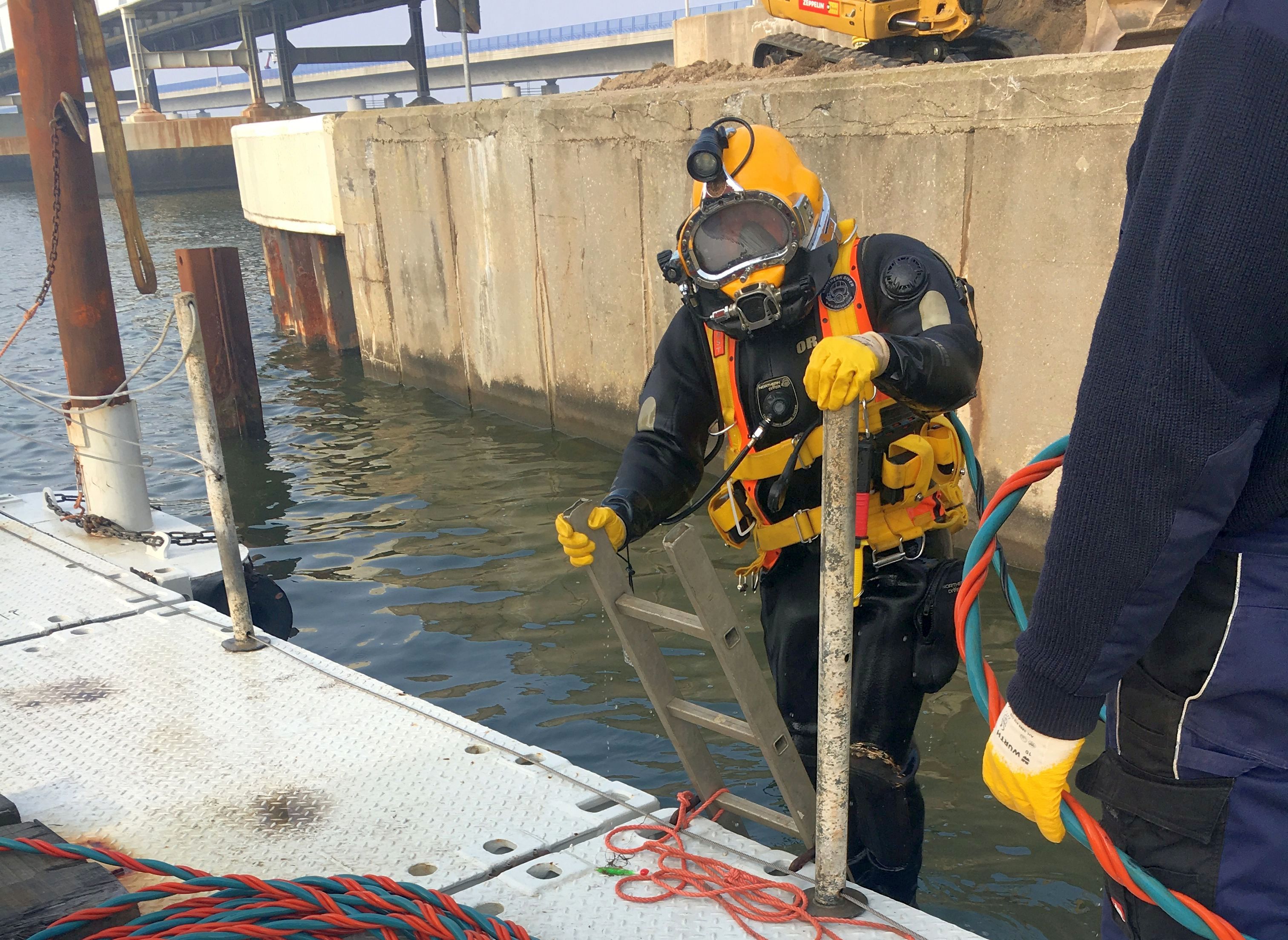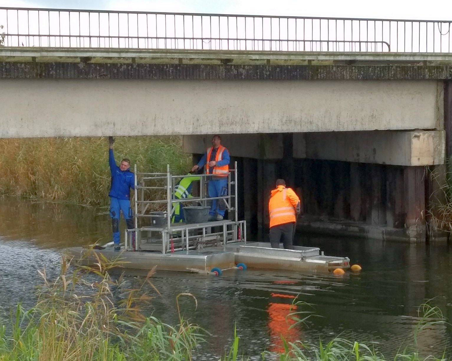 Bauwerksuntersuchungen - von schwimmender Arbeitsplattform oder aus luftiger Höhe, mal mit Tauchern Unterwasser - wir fürchten kein Medium und finden eine Lösung.